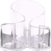 Sleek design in clear. This desk organizer enough room for your items and suitable size on your desk. Size of the whole holder: 6.2 x 5.8 x 4.64Inch