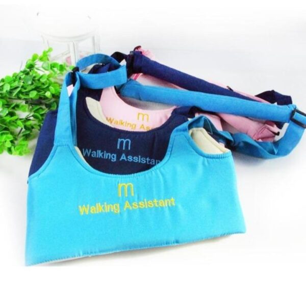 -After fastening the vest, hold the handle straps securely while allowing your child to balance and confidently practice walking.