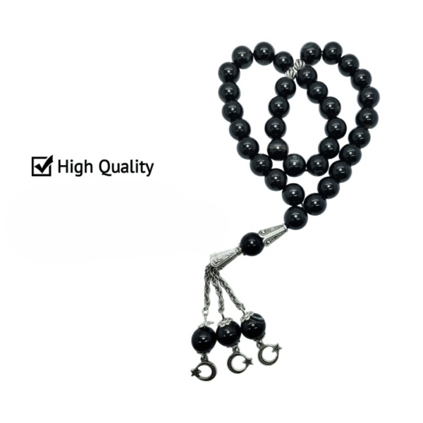 Authentic Black Aqeeq Stone: Our tasbeeh features genuine Black Aqeeq stones, carefully chosen for their exceptional quality and beauty.