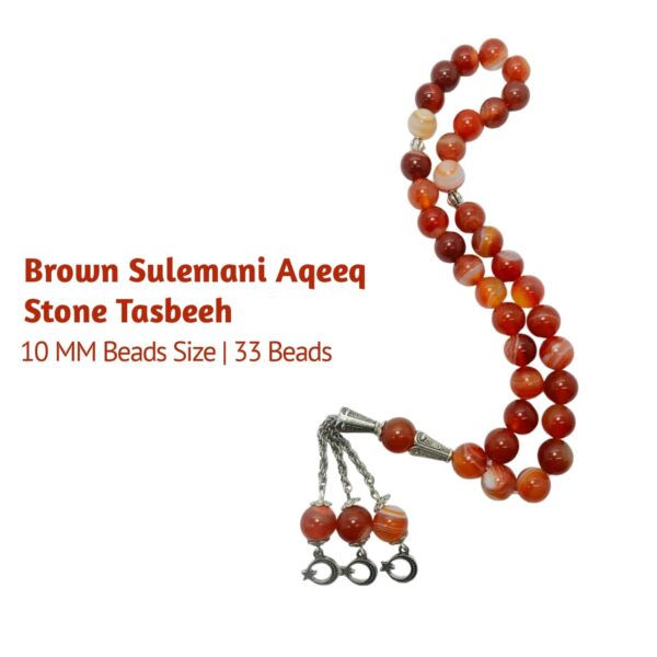Brown Sulemani Aqeeq Stone Tasbeeh (Original) | 33 Beads | 10 MM Size | Religious Islamic Tasbih Gift