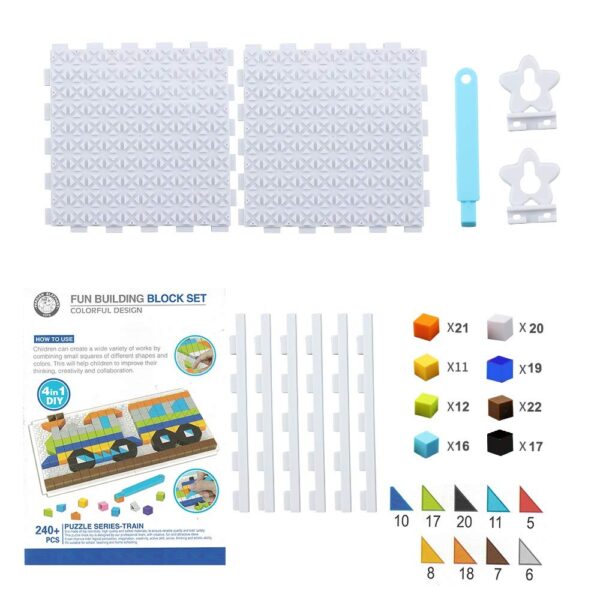 Children can create a wide variety of works by combining small squares of different shapes and colors which helps in critical thinking, creativity and collaboration