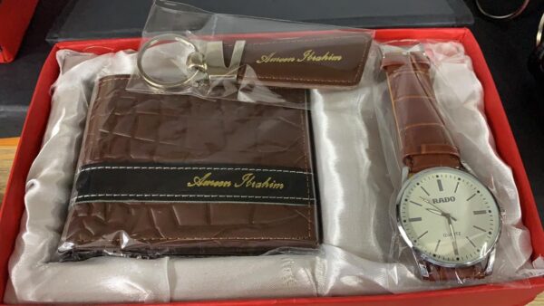 Customize Crocodile Brown Wallet With KeyChain & Watch