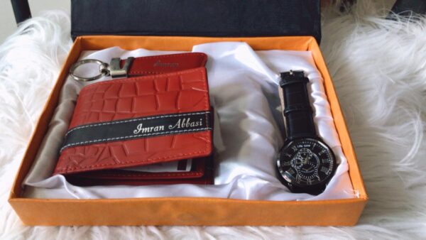 Customize Crocodile Red Wallet With KeyChain & Watch