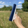 TWO VERSIONS OF MAGAZINES – the smaller magazine is compact and easy to carry, perfect for shorter games, providing enough water for many shots. The large drum magazine has a much larger capacity, which allows for longer fun without the need for frequent refilling of water. It is perfect for long sessions of water battles . To change the magazine, press the blue button located next to the trigger, which releases the magazine lock. The water tanks are sealed, which ensures easy pouring of water and no leakage while having fun.