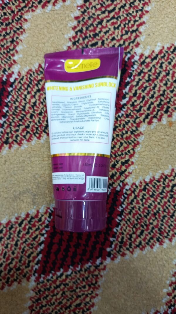 New Gilani Mattemelie SPF 60 Oil-Free Sunblock with vitamin C, is a unique formula, loaded with Vitamin C, E and many other essential ingredients, that help repair skin & combat UV rays and sunburns. Its lightweight, non-greasy texture absorbs quickly, gives a natural finishing without a white cast and locks in hydration, keeping the skin moisturized for lasting impact. Ideal for all skin types. Directions: Apply liberally & evenly on face and exposed parts of the body (neck, arms, legs Etc.) 15-30 minutes before sun exposure. Re-apply frequently. Caution: For external use only. Not to be swallowed. Avoid contact with eyes. Discontinue use if signs of irritation or rash appear.
