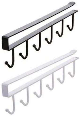 Glodenbridge Hooks Rack, Multi-Function 6 Hook Under Shelf Mugs Cups Wine Glasses Storage Drying Holder Rack, Cabinet Hanging Organizer Rack for Ties And Belts (Random Color)
