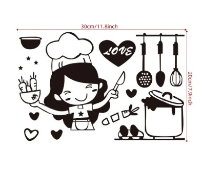 Happy Girl Chef Loves Cooking Wall Sticker Restaurant Bar Kitchen Dining Room Fridge Light Switch Decal Diy Art