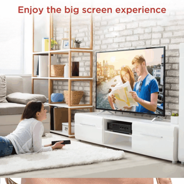 【Plug & Play】Easy operation, no limitations, no restrictions, no hassle. Only 3 steps to enjoy media files on the large screen. Plug>Connecting>Mirroring by using Miracast, DLAN, and Airplay. Suitable for important business conferences, multimedia class education, home theater entertainment