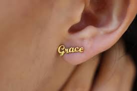 laser cut letter brand name earrings (Golden, Silver). Jewelry