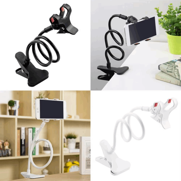 Stable and Durable,The arm of our mobile phone holder is made of high-quality materials, it is difficult to break, and the long arm is not super soft, so that it can be better stable, long-term use, and can keep a position for your phone.360 º Rotation,Designed with flexible long arms clamp, working at 360-degrees, making holder adjustable to view your device at any angle.