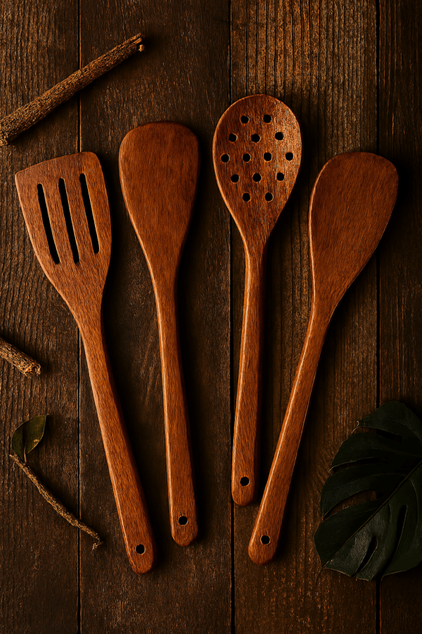 Pack Of 4 – Wooden Spoon Set – Light Brown Kitchen Tools & Gadgets | Kitchen Essentials for Daily Meal Preparation, Suitable for All Types of Cooks from Beginners to Experts.