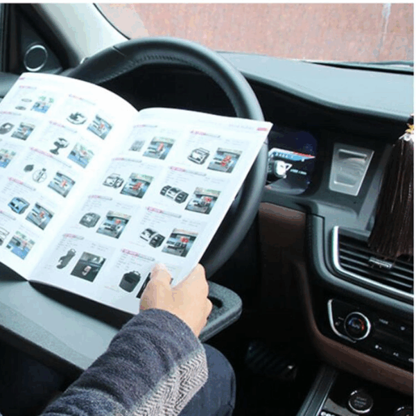 Portable car tray is easy to install, no installation tools needed, just clip the tray to the steering wheel, and it is ready to use.