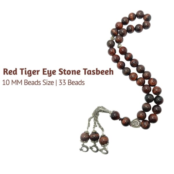 Authentic Red Tiger Eye Stone: Our tasbeeh features genuine Red Tiger Eye stones, carefully selected for their exceptional quality and beauty.