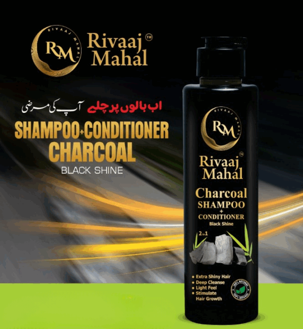 Rivaaj Mahal Charcoal Shampoo + Conditioner – Black Shine Formula for Deep Clean & Smooth Finish 200ml