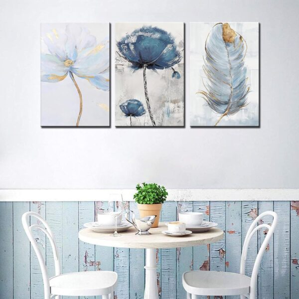 Set of 3 Fresh Posters – Flowers & Feather Wall Art Prints (8×11 Inches) with Double Tape