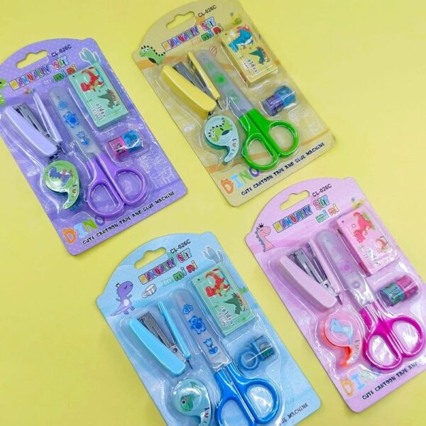 Complete 6-piece stationery set with essential desk supplies.