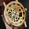 Stylish Leather Watch with Gold-Tone Stainless Dial & Brown Strap Without Box