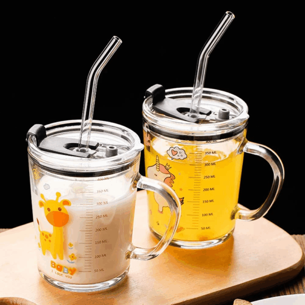Unicorn Shape 350 ML Glass Mug with Straw and Lid Creative Cartoon Children’s Glass Milk Cup Juice Glass Drink Ware Water Bottle 1 pcs (Unicorn Shape )
