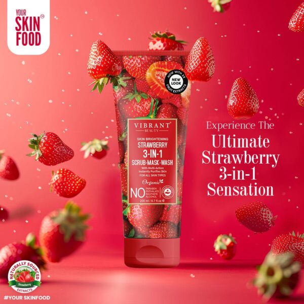 Vibrant Beauty Strawberry 3in1 Scrub-Mask-Wash is a versatile skincare product that combines the benefits of a scrub, mask, and face wash in one convenient formula.