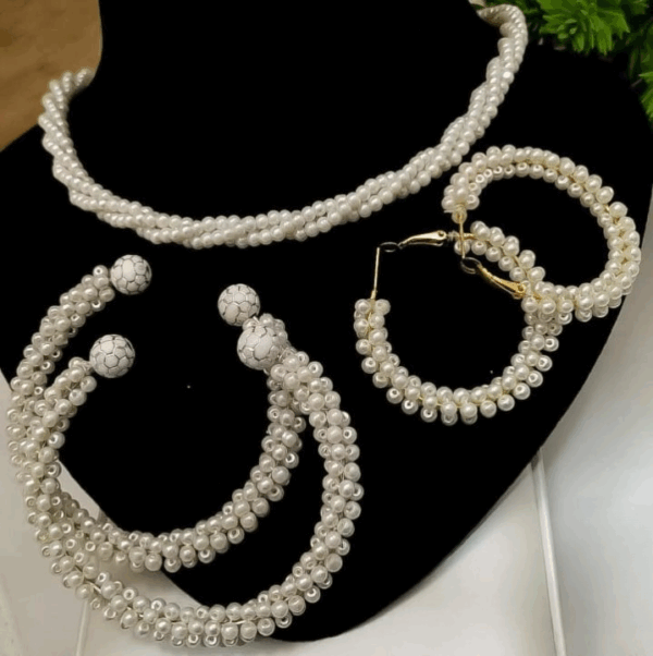 Women Pearl Elegant Jewelry Set ,Kangan, Mala & Earrings Pearl Set(white)