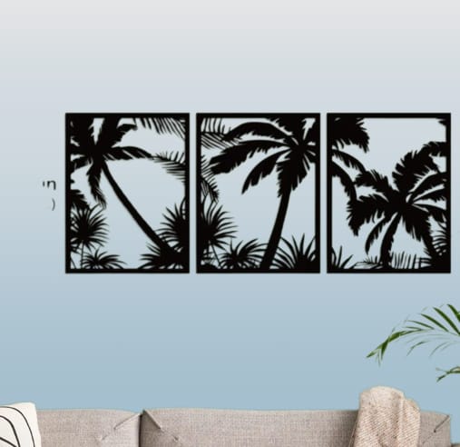 Wooden Palm Trees Wall Decoration (3pc Set)