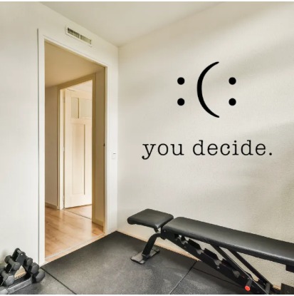 Enhance the ambiance of your room or gym with the “You Decide” motivational quote wall decal.